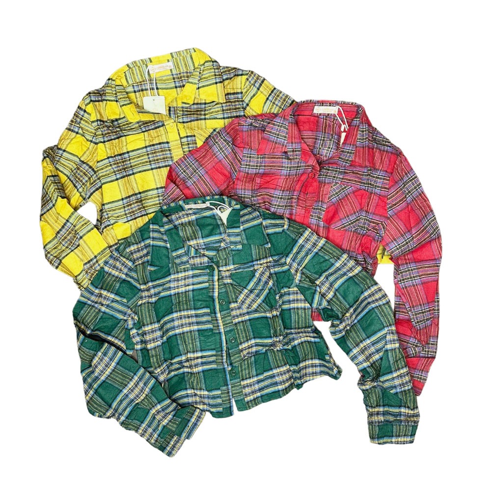 Blusa Feminina Xadrez Flanelada Com Botão Manga Longa (Cropped)
