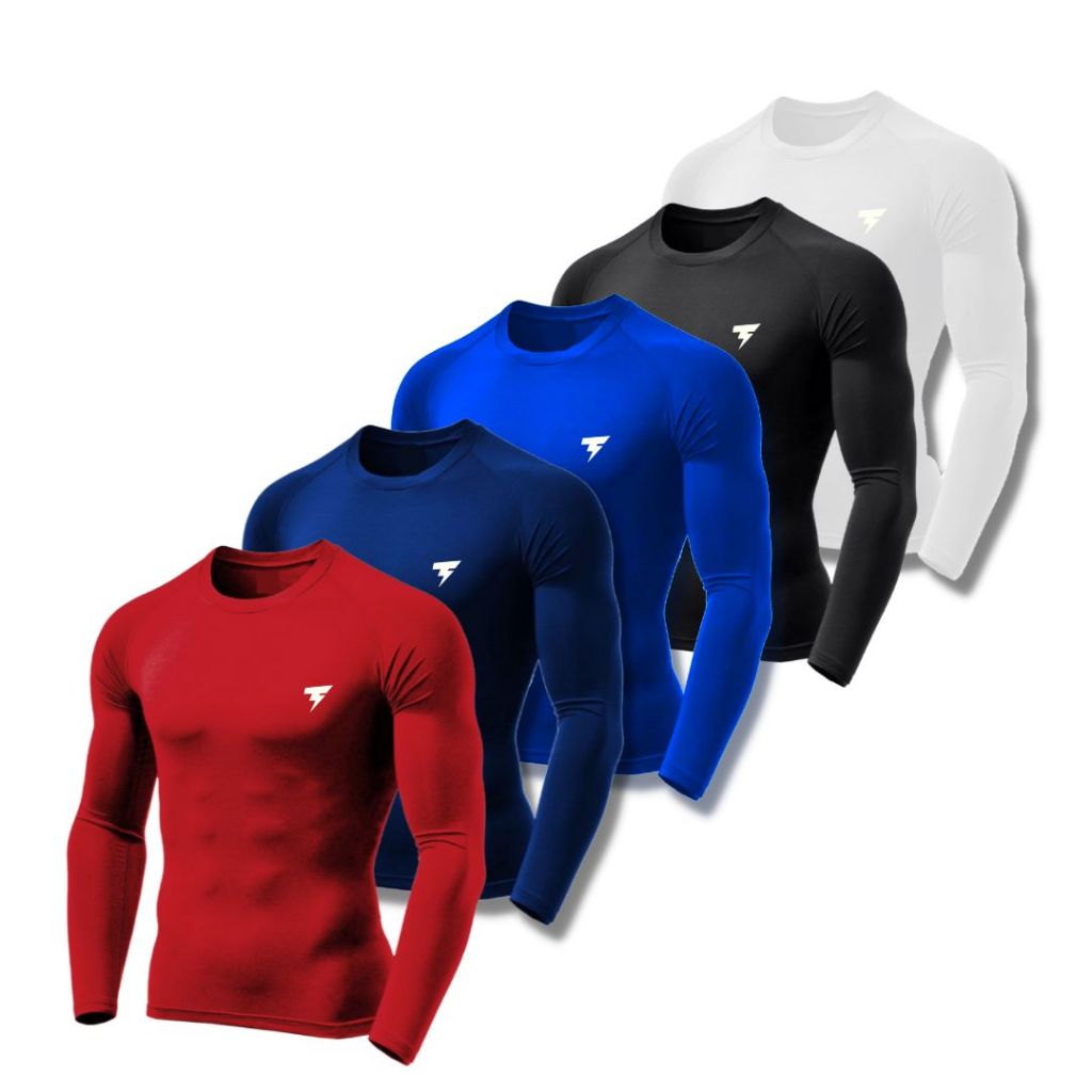KIT c/5 Blusa Termica Masculina Manga Longa Proteção UV Frio Calor Malha Fria Camisa Fitness Academia Corrida e Também na Opção com 2 Unidades