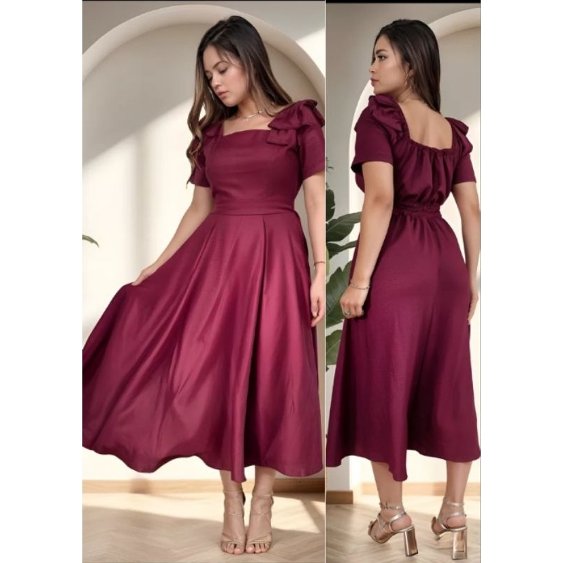 Vestido Mídi feminino Plus Size de M-G3 Com Manga Duna Linho Com Laço Na Ombro evangelica
