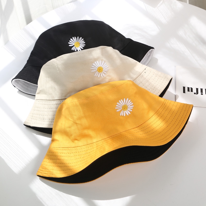 Chapéu Bucket com Margarida Pequena / Chapéu Pescador para Sol ao Ar Livre / Moda Casual para Praia