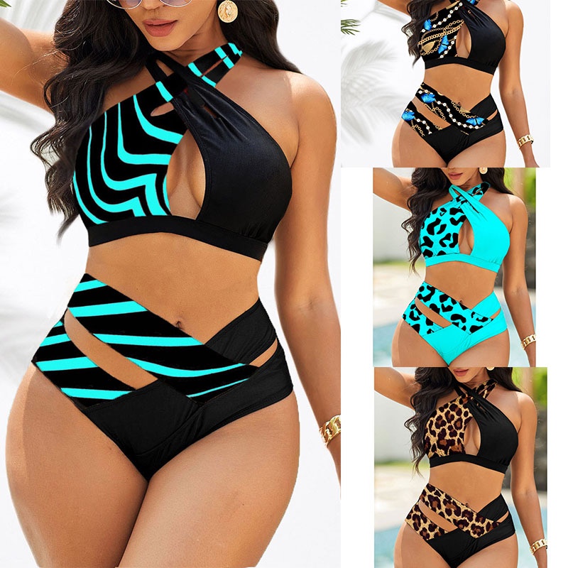 Traje De Banho Feminino 5XG Plus Size Triângulo Pescoço Cruzado Biquíni Dividido