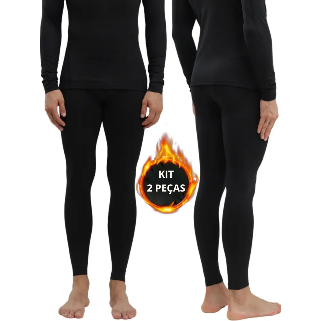 Kit 2 Calça termica masculina levemente acolchoada preta inverno segunda pele flanelada