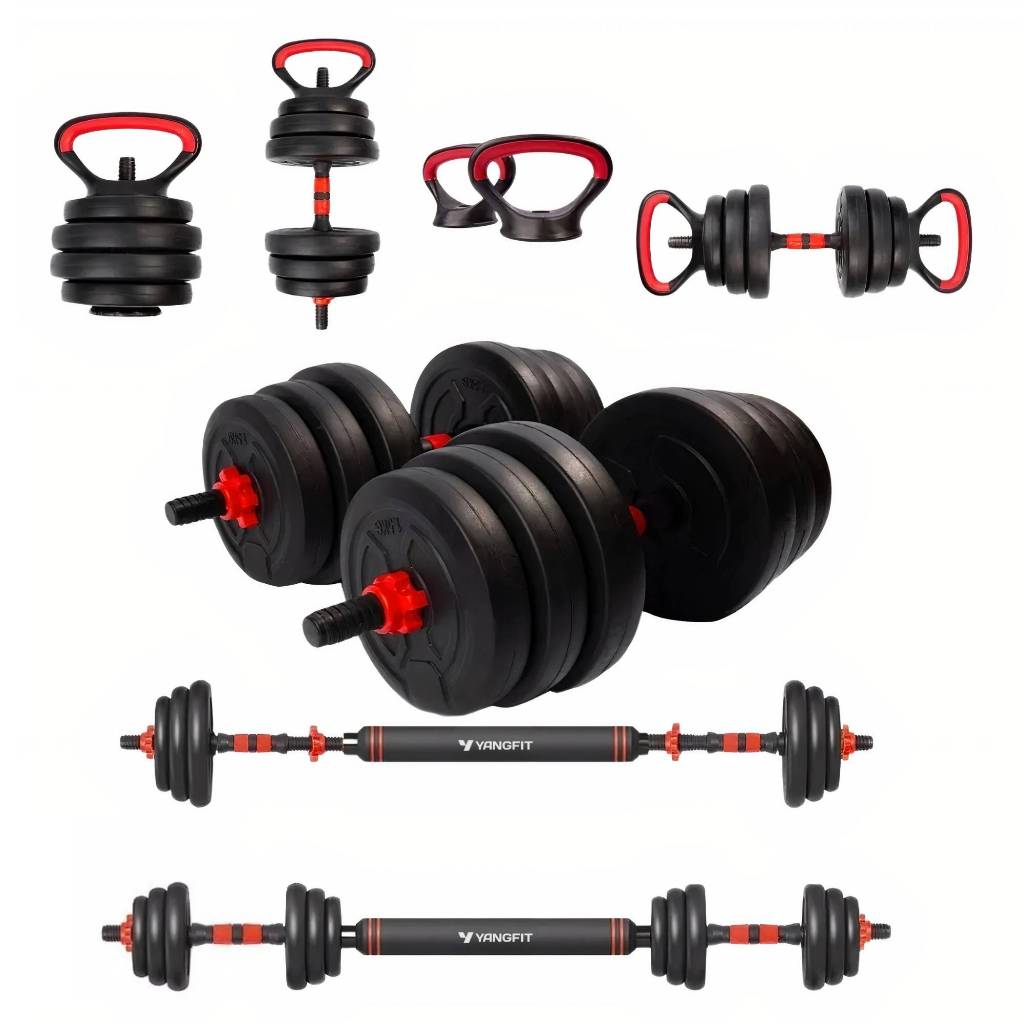 Kit Musculação Completo Yangfit com Barra Anilha + Halter + Kettlebell - 25kg