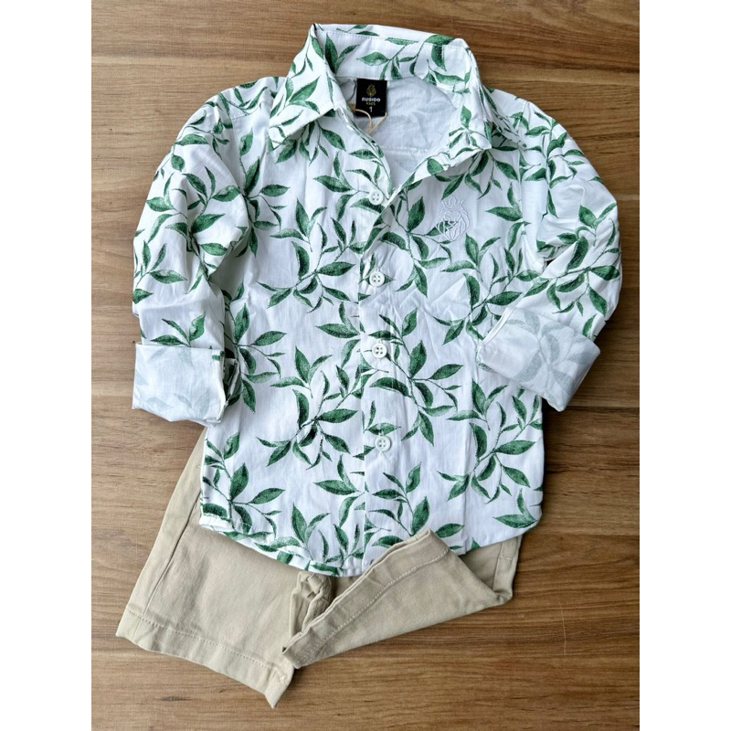 Conjunto de camisa manga longa e Bermuda Bolso Faca