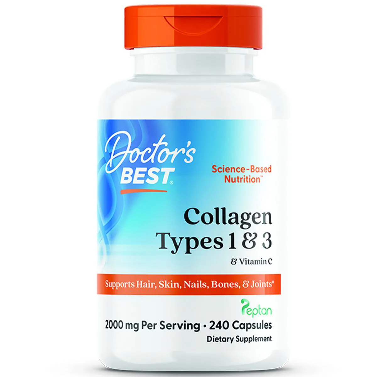 Colágeno Tipo 1 e 3 Peptan Vit C 240 Capsulas Doctor's Best