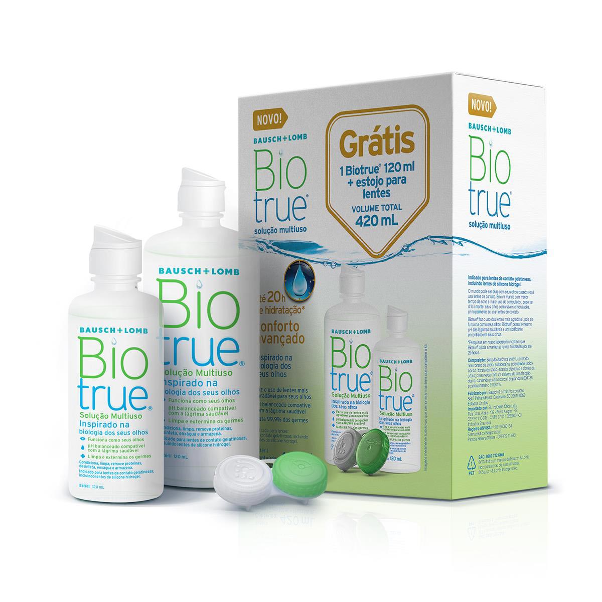 Kit Biotrue Solução para Lentes de Contato com 1 frasco de 300ml + 1 frasco de 120ml + 1 estojo para lentes
