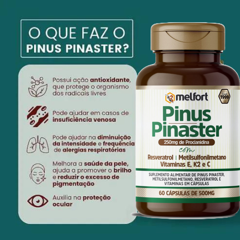 Kit 2 Pinus Pinaster Com Reverastrol, Vitamina E, K2 e C Clareamento de Manchas 120 Cáps