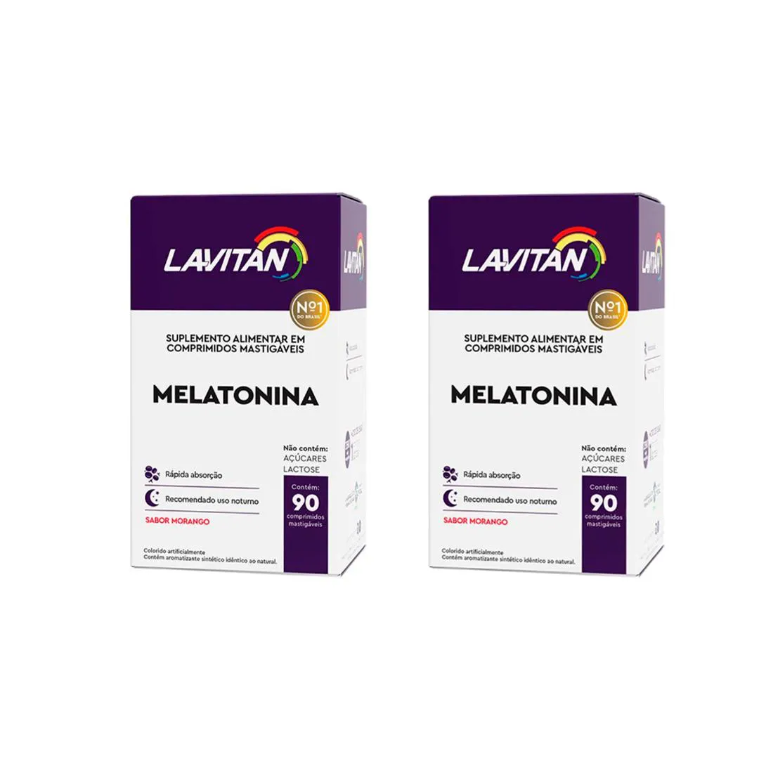 KIT COM 2 SUPLEMENTO ALIMENTAR LAVITAN MELATONINA MORANGO CIMED COM 90 COMPRIMIDOS MASTIGÁVEIS