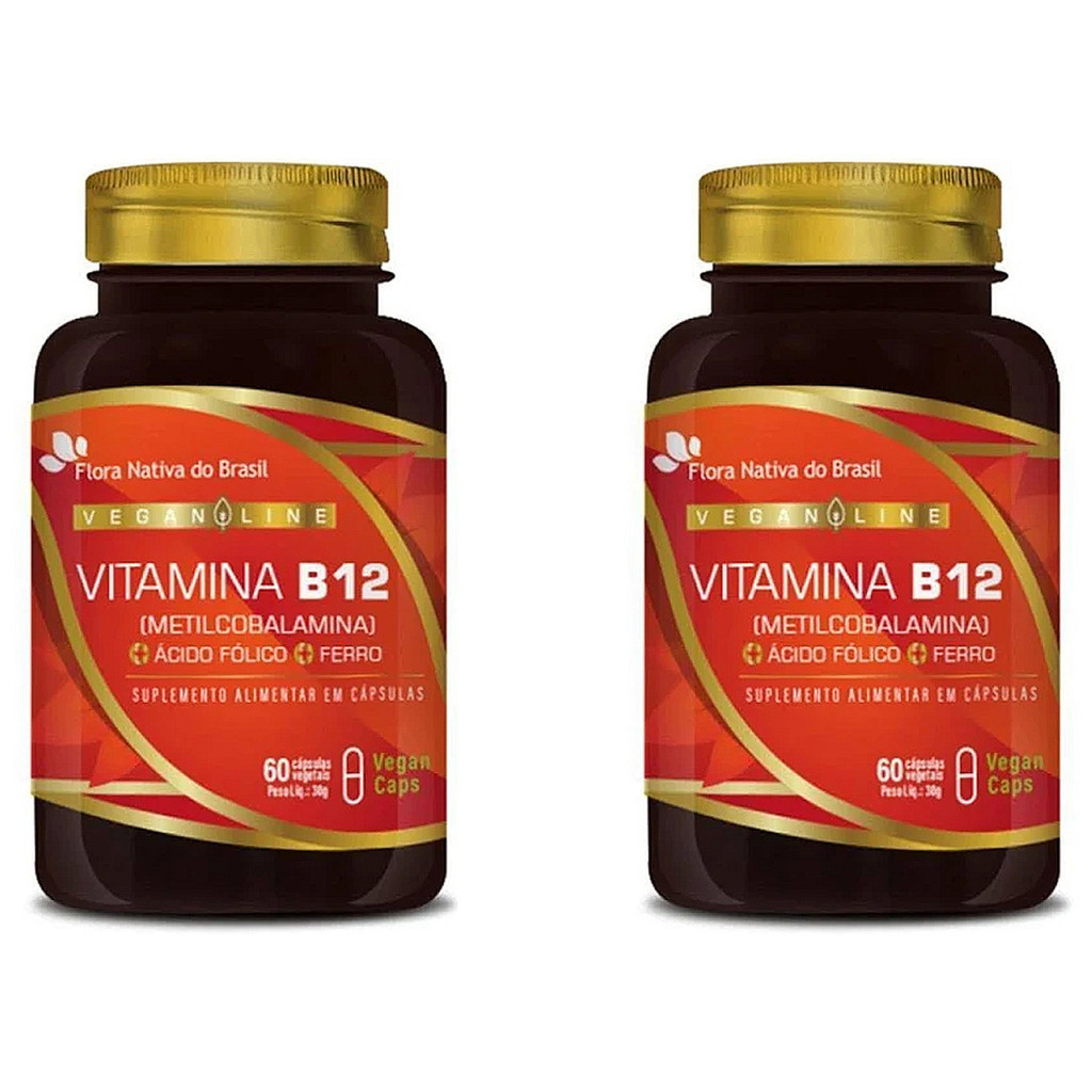 2x Vegan Vitamina B12 Metilcobalamina + Ferro + Ácido Fólico 60Caps - Flora Nativa do Brasil