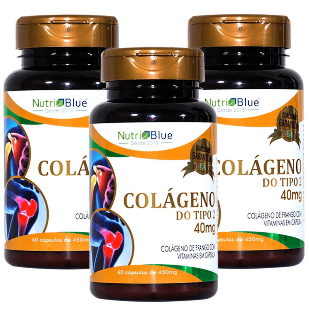 Colageno Tipo 2 UCll 40mg 60 Cápsulas Nutriblue Kit X3