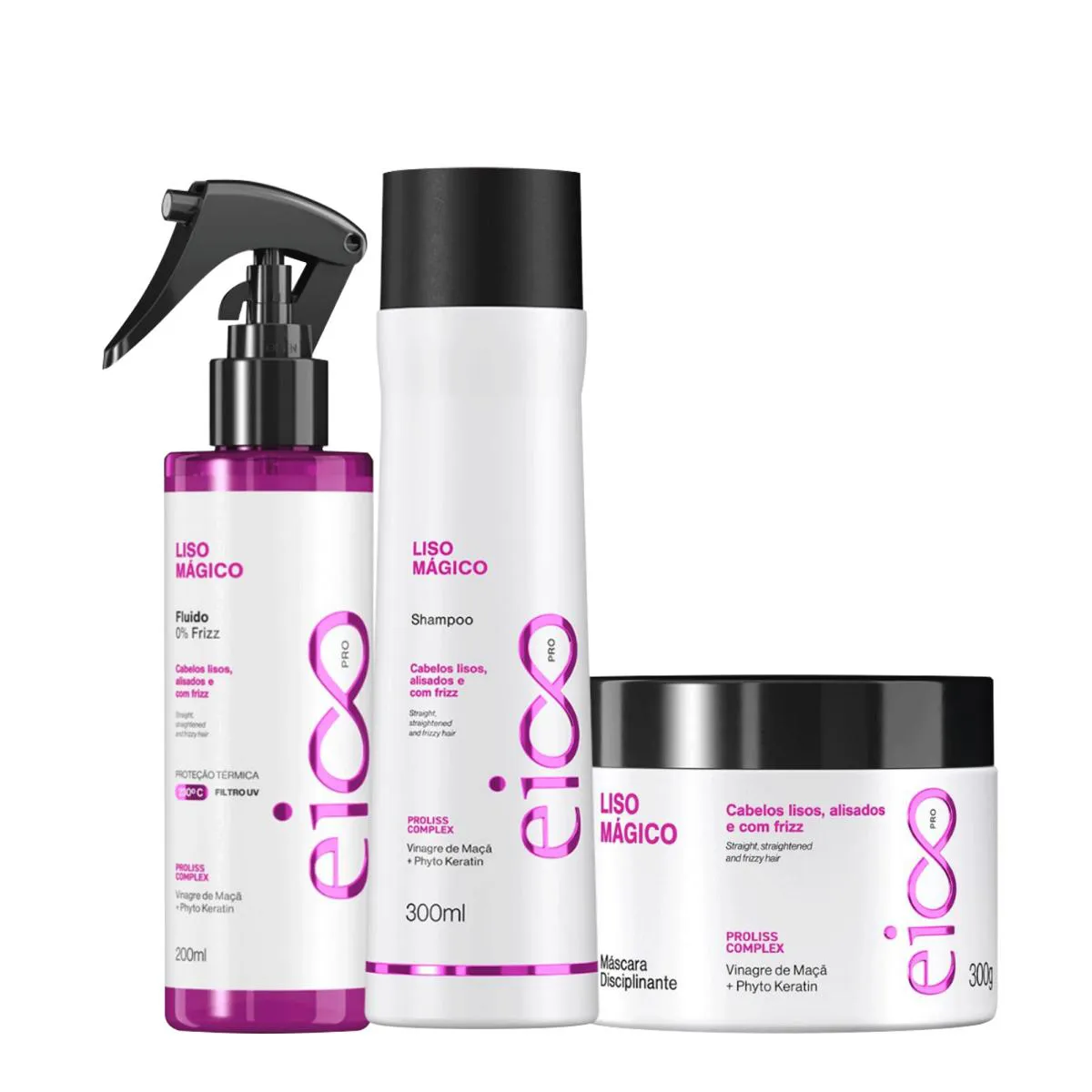 KIT EICO PRO LISO MáGICO - SHAMPOO 300ML + MáSCARA TRATAMENTO 300G + FLUIDO 200ML