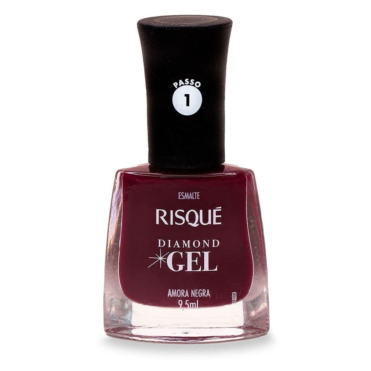 Esmalte Risqué Diamond Gel Amora Negra Hipoalergênico com 9,5ml