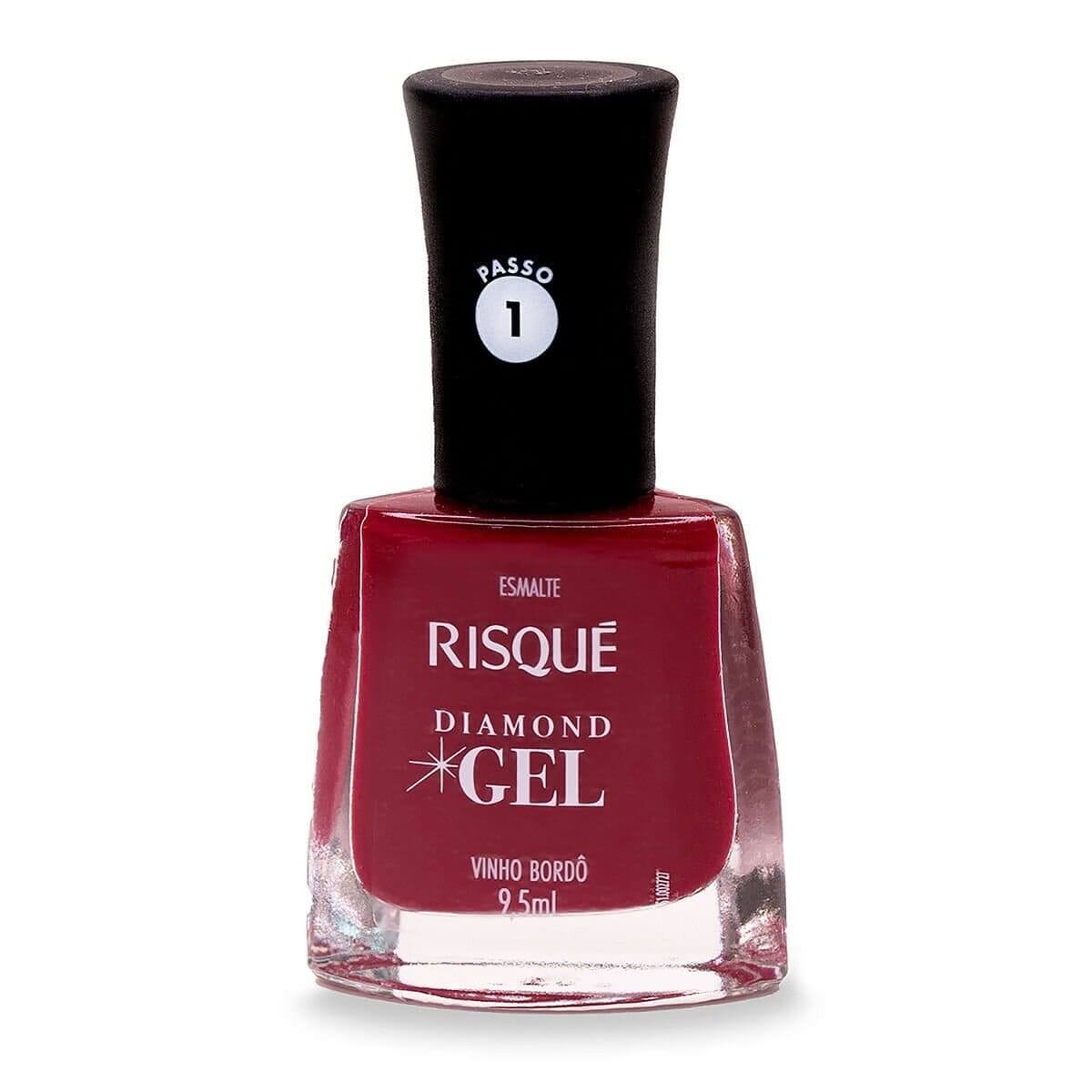 Esmalte Risqué Diamond Gel Vinho Bordô Hipoalergênico com 9,5ml