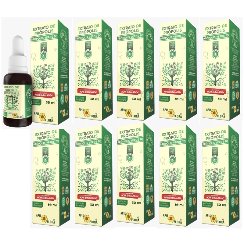 KIT 10un EXTRATO DE PRÓPOLIS VERDE 70 30ml APIS FLORA + SUPER BRINDE