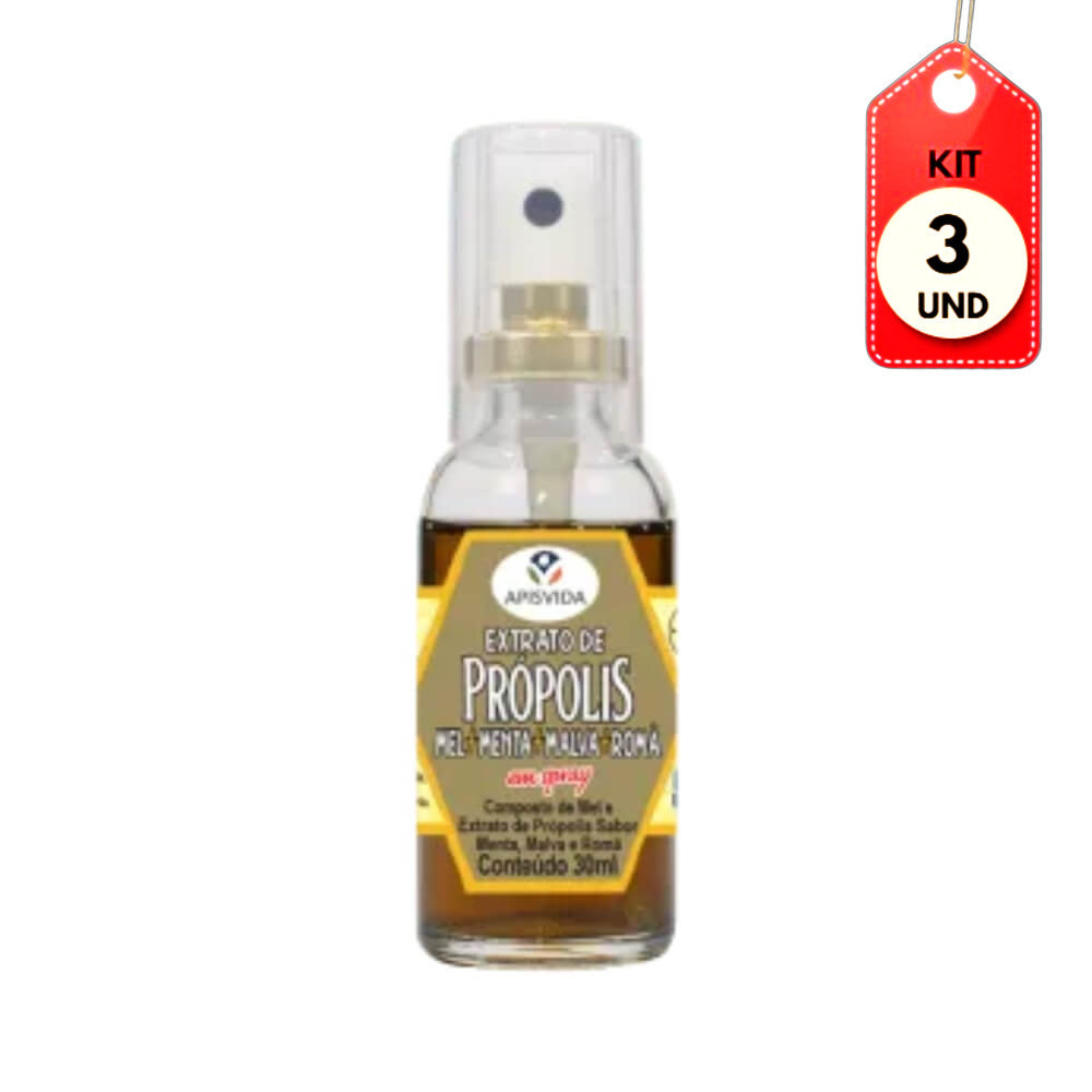 KIT C/03 APIS VIDA PRÓPOLIS ROMÃ SPRAY 30ML