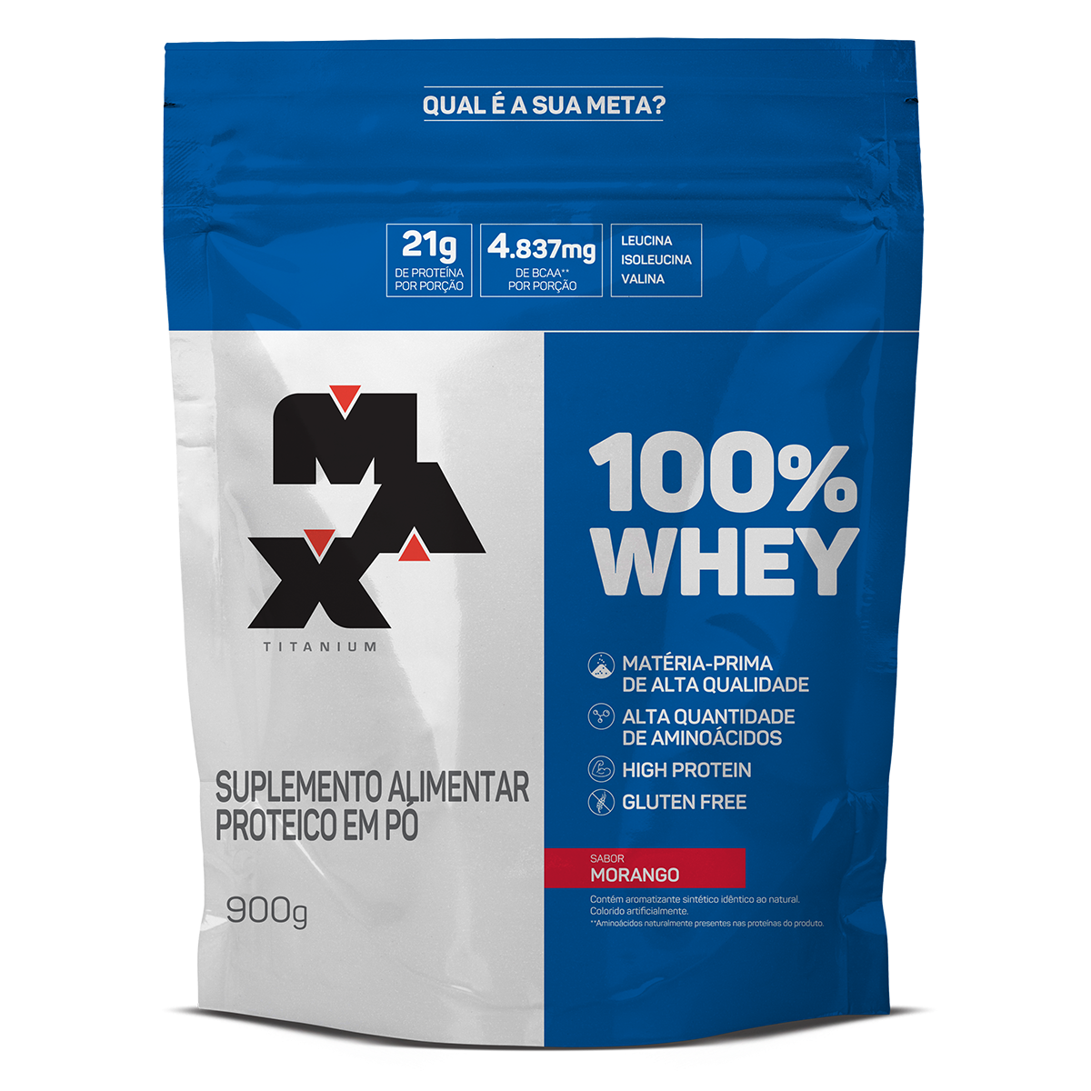 Whey Protein Max Titanium 100% Whey Refil Morango 900g