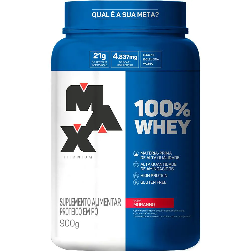 100% WHEY PROTEIN 900G SABOR MORANGO - MAX TITANIUM
