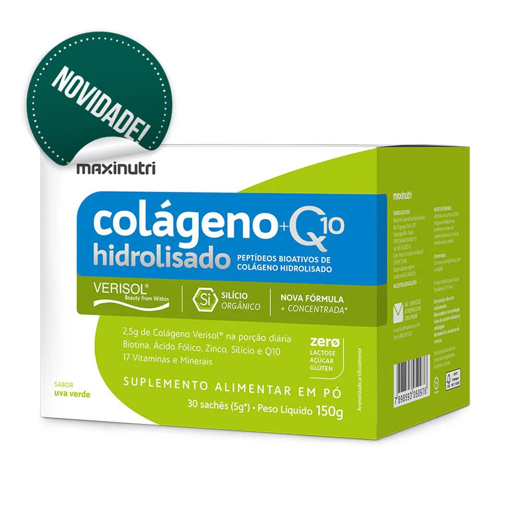 COLáGENO VERISOL 30 SACHêS UVA VERDE + Q10 E SILICIO ORGâNICO MAXINUTRI