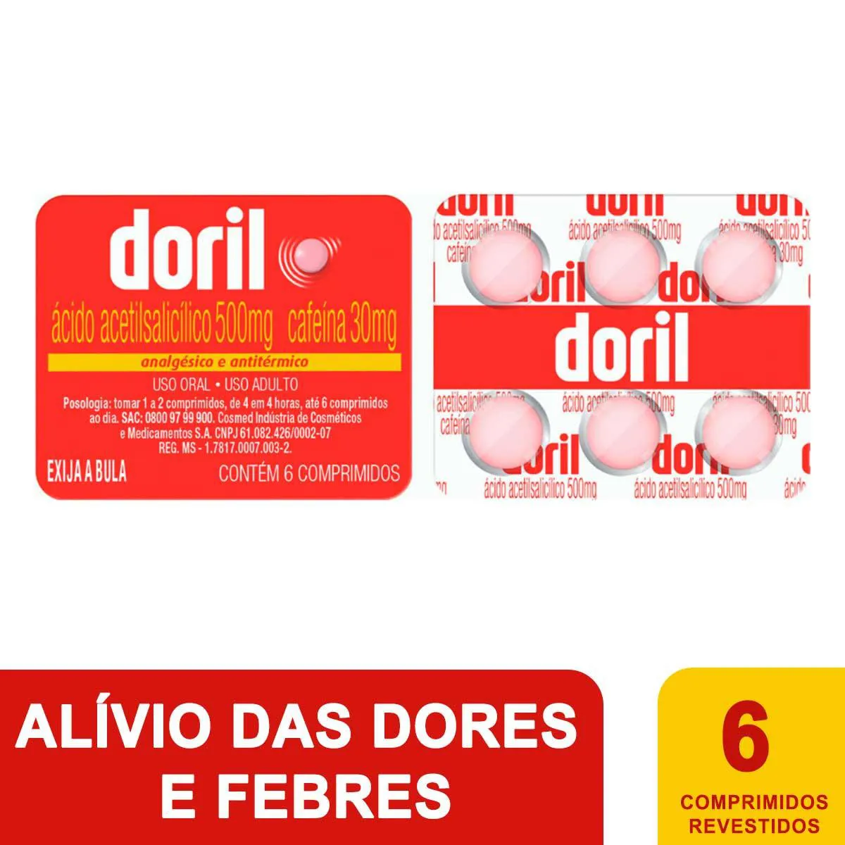 Doril Acido Acetilsalicilico 500mg + Cafeína 30mg 6 comprimidos