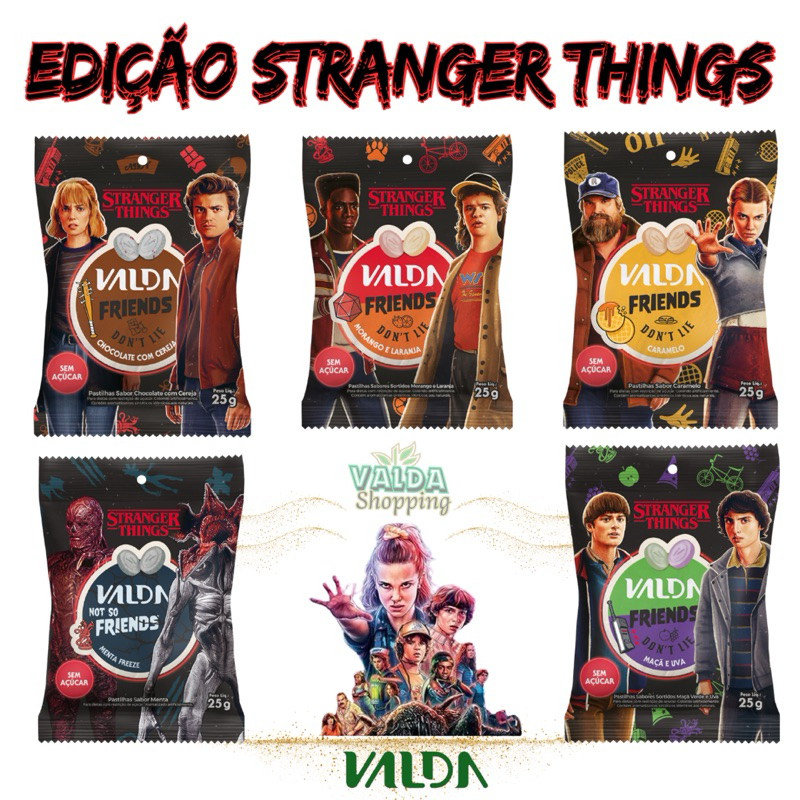 Pastilhas Valda Friends Stranger Things Kit C/5 Sachês Sortidos de 25g Cada