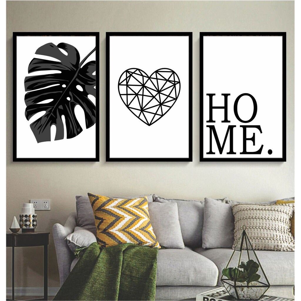 Kit 3 Quadros Folhagem Preto e Branco Home Decoração De Casal Corredor Hall Moderno Trio Conjunto