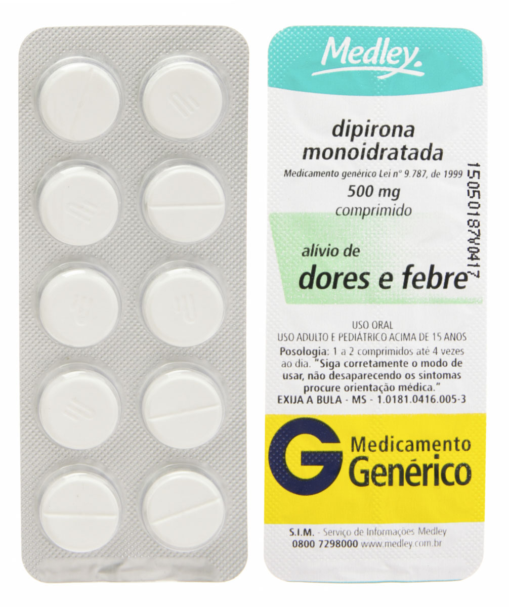 Dipirona Monoidratada 500mg 10 comprimidos Medley Genérico