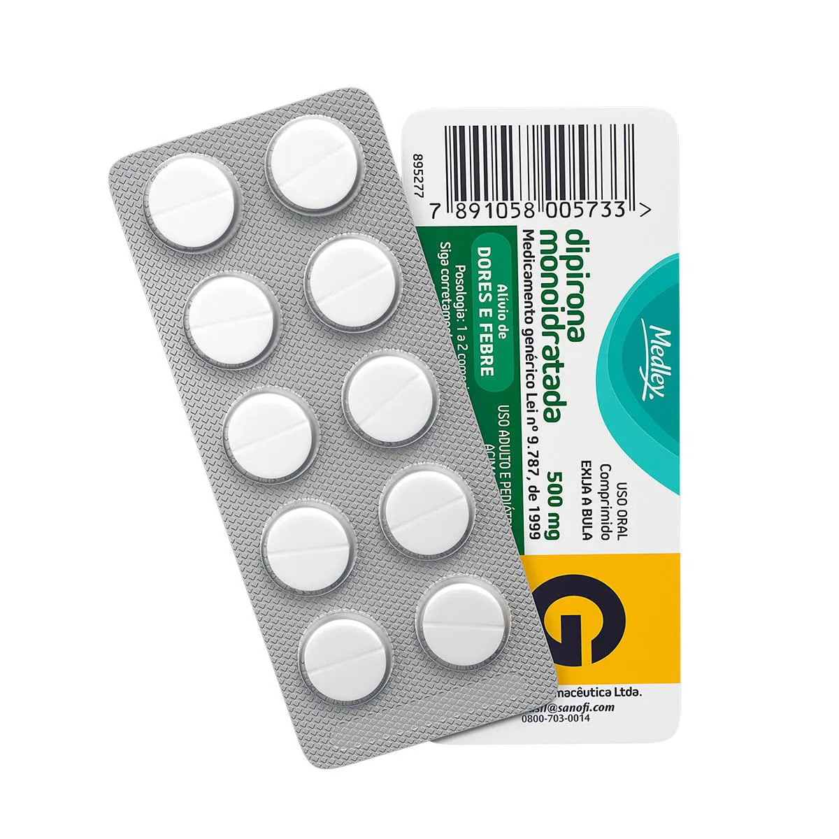 Dipirona Monoidratada 500mg caixa 10 comprimidos Sanofi Medley Genérico