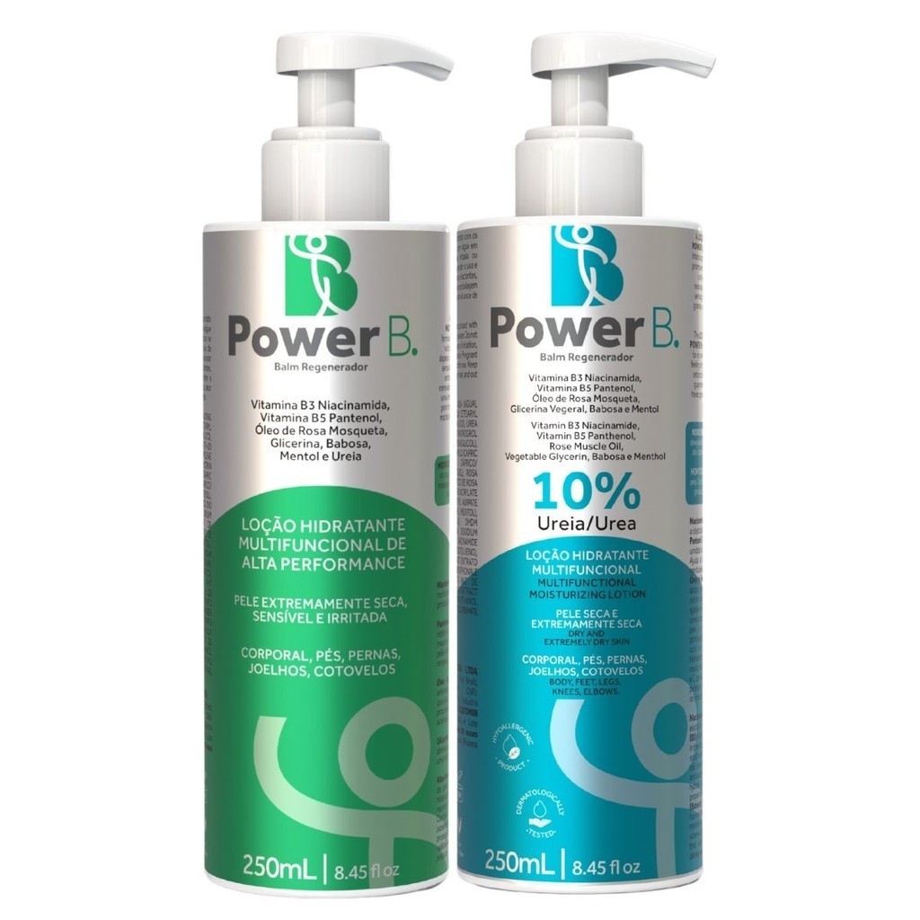 Kit Loção Multifuncional Hidratante Corporal Pele Seca Diario + 10% Ureia, Power B 250Ml Rosa mosqueta, babosa, mentol, pés, pernas cotovelos e joelhos