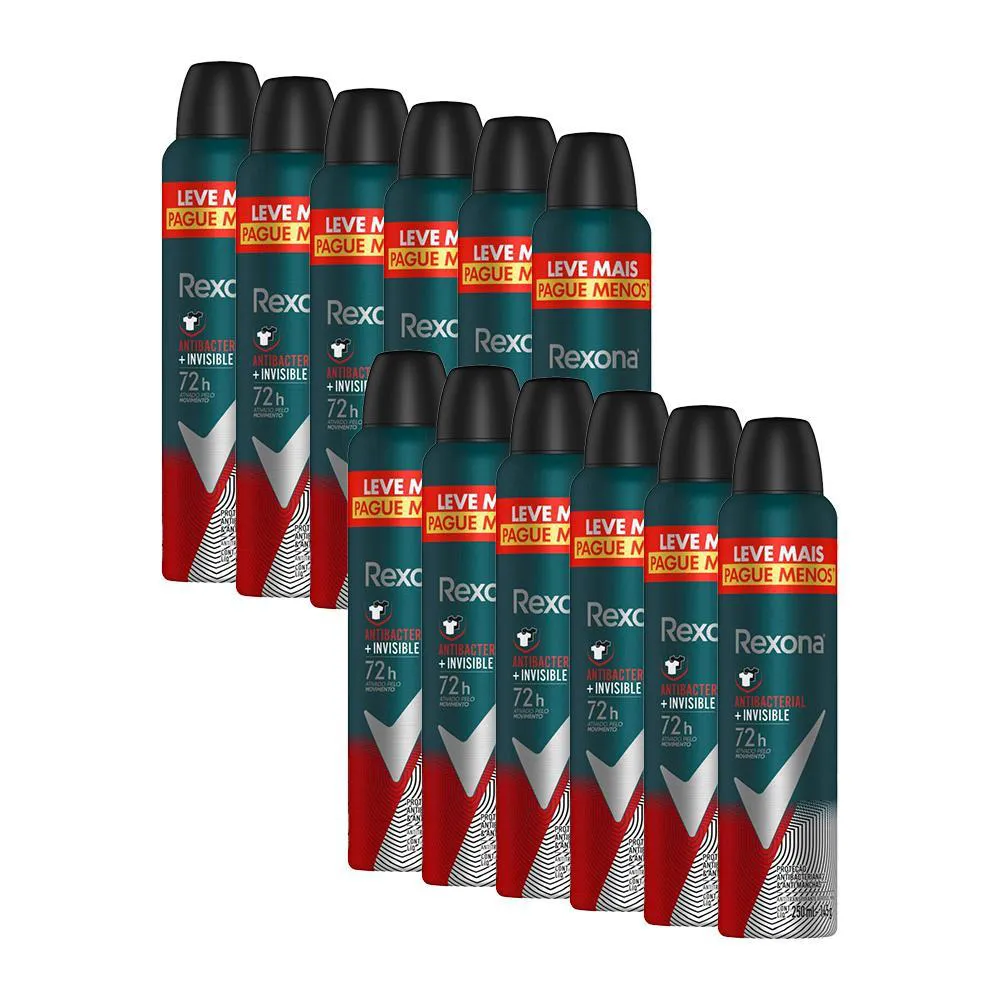 Kit Desodorante Aerosol Rexona Antibacterial+Invisible Men 150ml - 12 Unidades