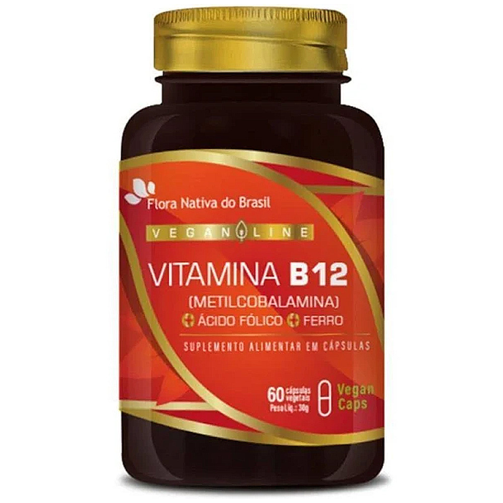 Vegan Vitamina B12 Metilcobalamina + Ferro + Ácido Fólico 60Caps - Flora Nativa do Brasil