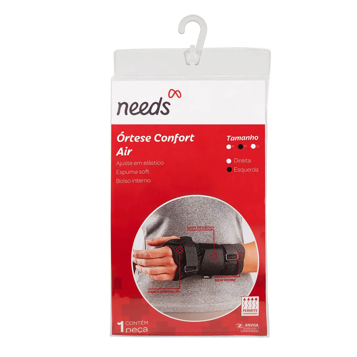 Órtese com Tala para Punho Esquerdo Needs Confort Air Tamanho M