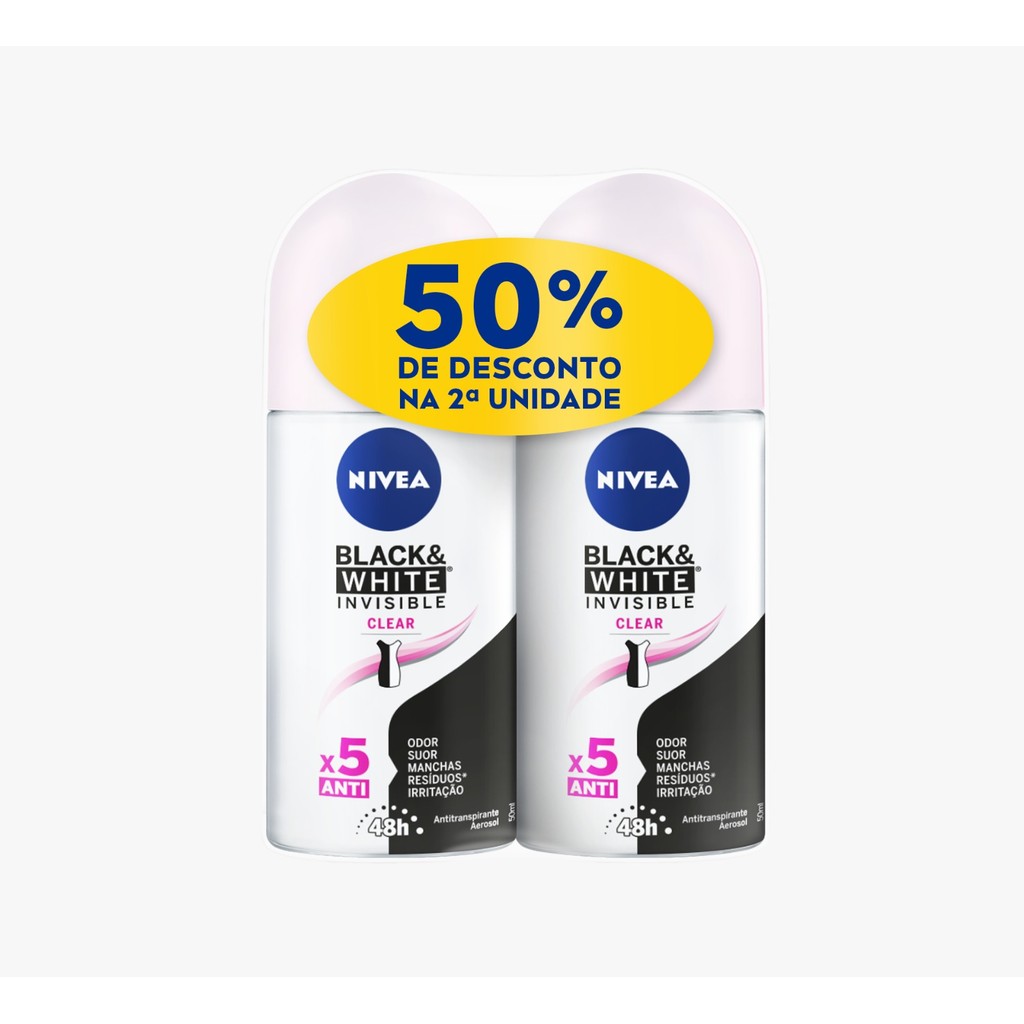 NIVEA Kit com 2 Desodorantes Antitranspirante Roll On NIVEA Invisible Black & White Clear 50ml