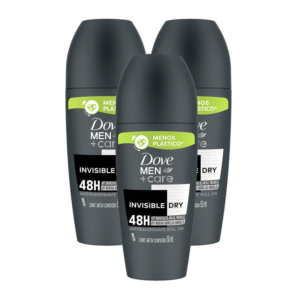 Kit 3 Desodorante Dove Men + Care Invisible Dry Roll-on Antitranspirante 48h com 50ml