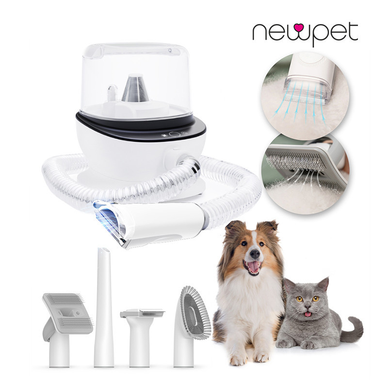 Maquina De Tosar com Aspirador de Pelos Pet Cães Gatos Kit de Limpeza 5 em 1 Banho e Tosa Pet Shop 127V Profissional - NewPet