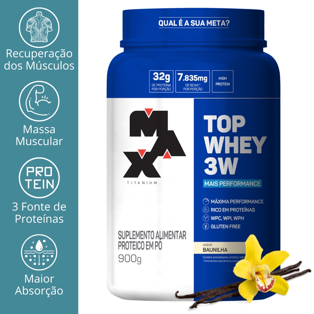 Top Whey 3w Mais Performance 900g Baunilha Max Titanium