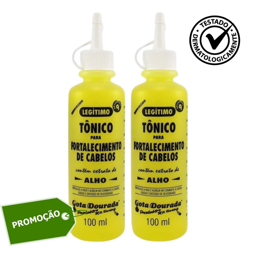 Kit 2 Tonico Alho Fortalecimento Capilar Maciez Gota Dourada 100ml
