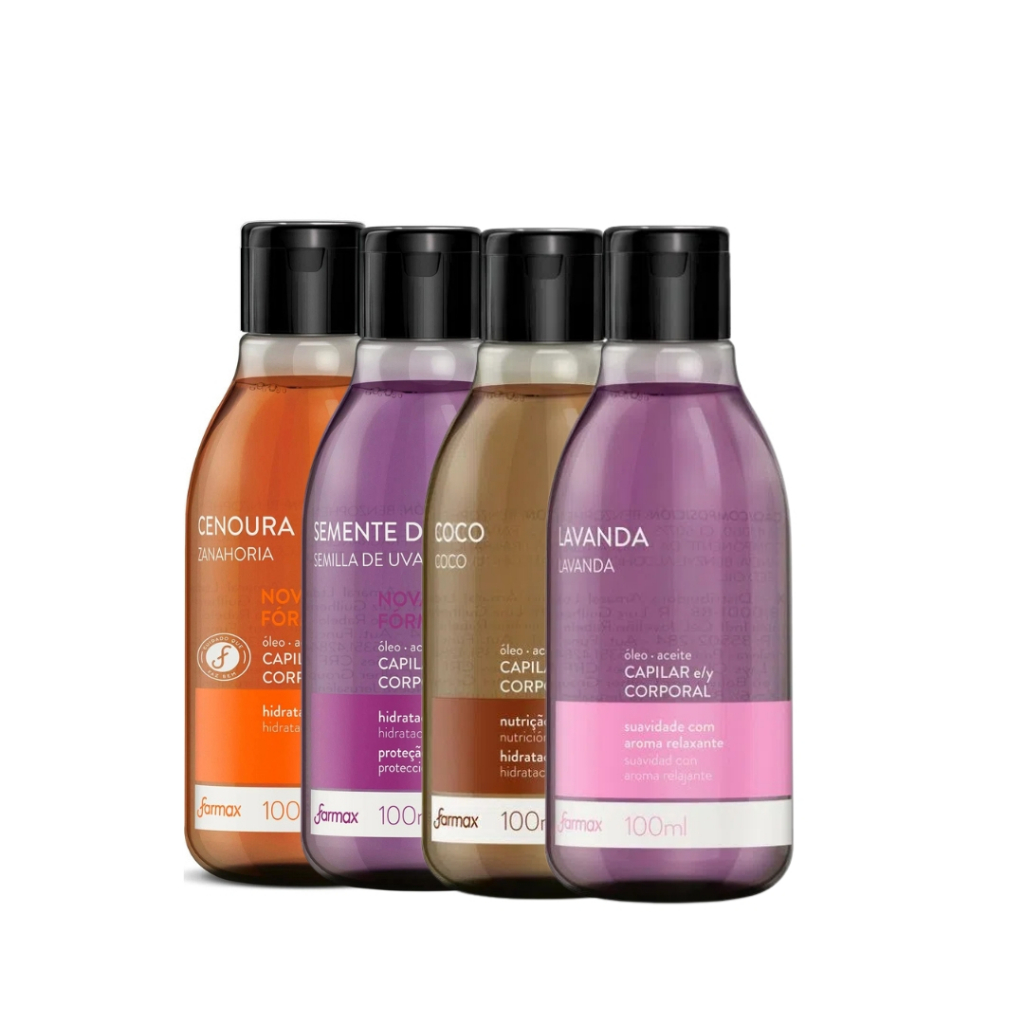 OLEO CORPORAL E CAPILAR FARMAX 100ml - UVA, LAVANDA,GIRASSOL, COCO E CENOURA