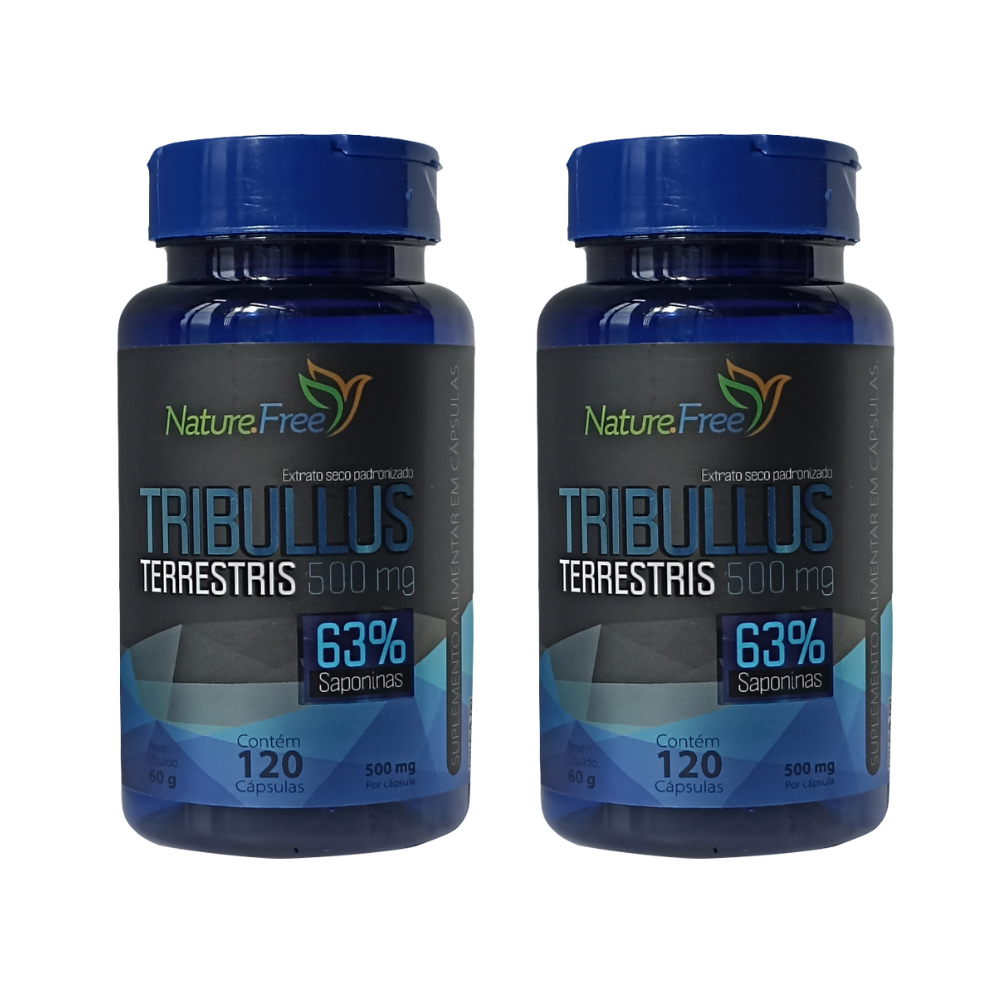 Kit 2 Suplemento Tribullus 500 mg 120 cáps 63% sapon.