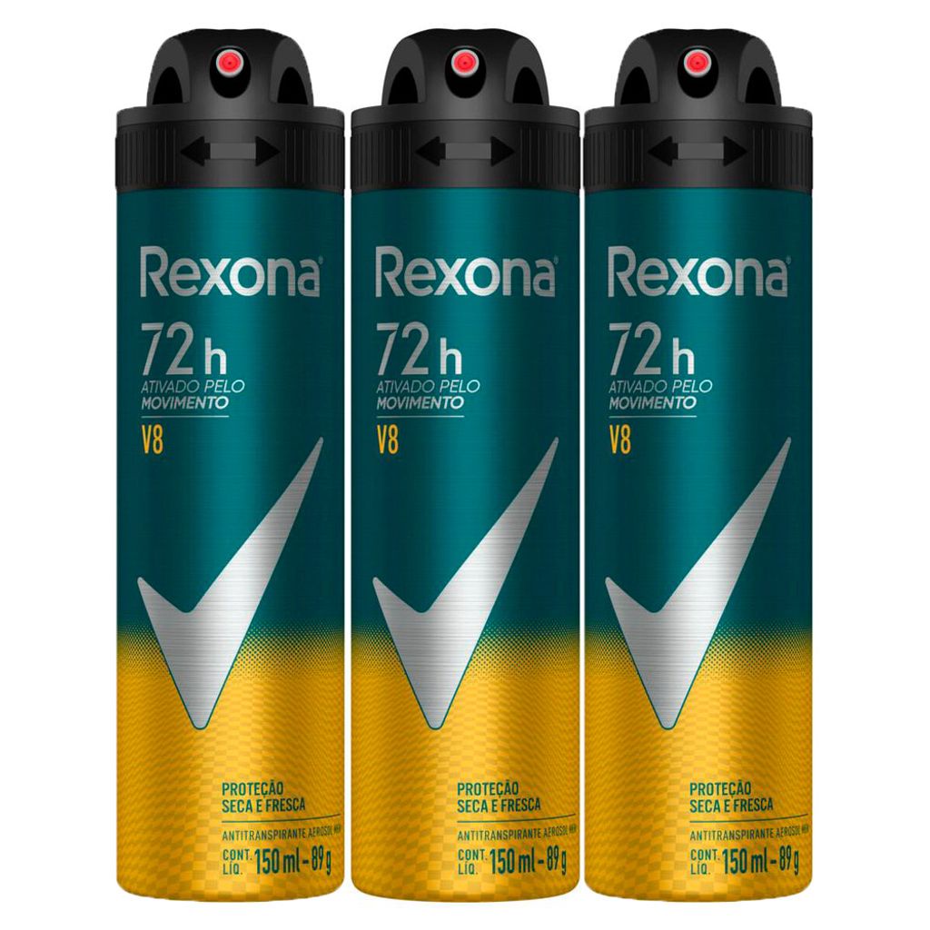 Kit 3 Desodorante Rexona Men V8 Aerosol Antitranspirante 48h 150ml