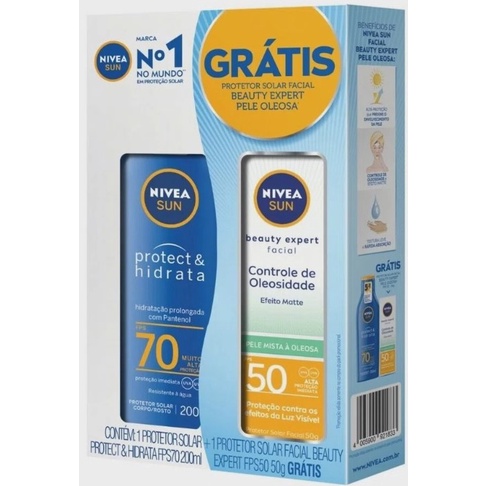 Kit Protetor Solar Nívea Sun FPS70 200ml e Protetor Solar Facial Beauty Expert FPS50 50g