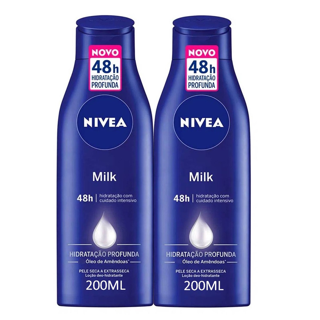 Kit 2x Loção Desodorante Creme Hidratante Nivea Milk 200ml 48h Hidratação Profunda Óleo de Amêndoas Pele Seca Extrasseca