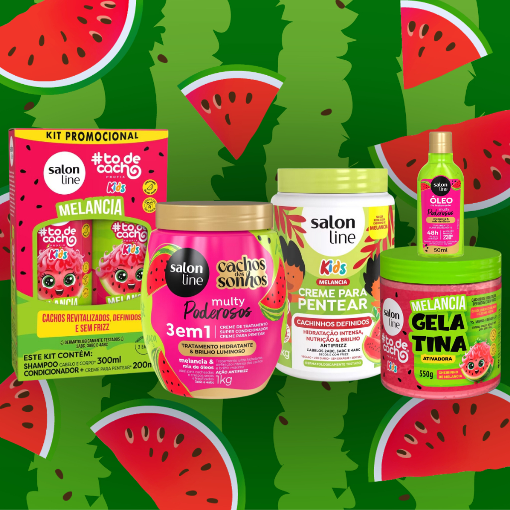 Kit Salon Line Kids Melancia Shampoo e Condicionador + Creme Pentear + Gelatina + Óleo + Tratamento