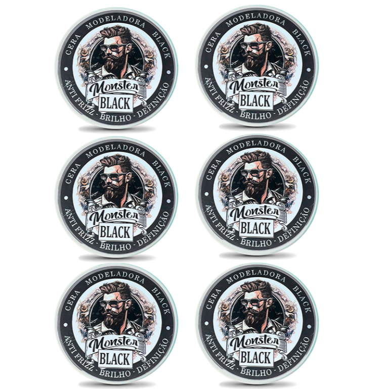 6 cera Modeladora Preta Pigmentada Fixação 120g monster barber escurecedora de barba bigode e cabelo