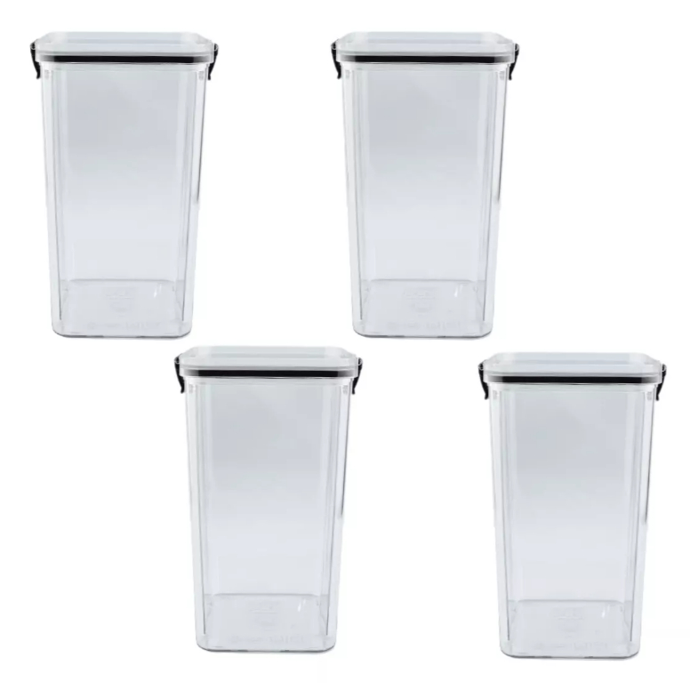 Kit 4 Potes Herméticos 1,6 Litro Tampa De Vedação Empilhável