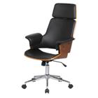 Cadeira Presidente Wood Encosto com Madeira, Couro Ecológico Preto Base em Aço com Relax