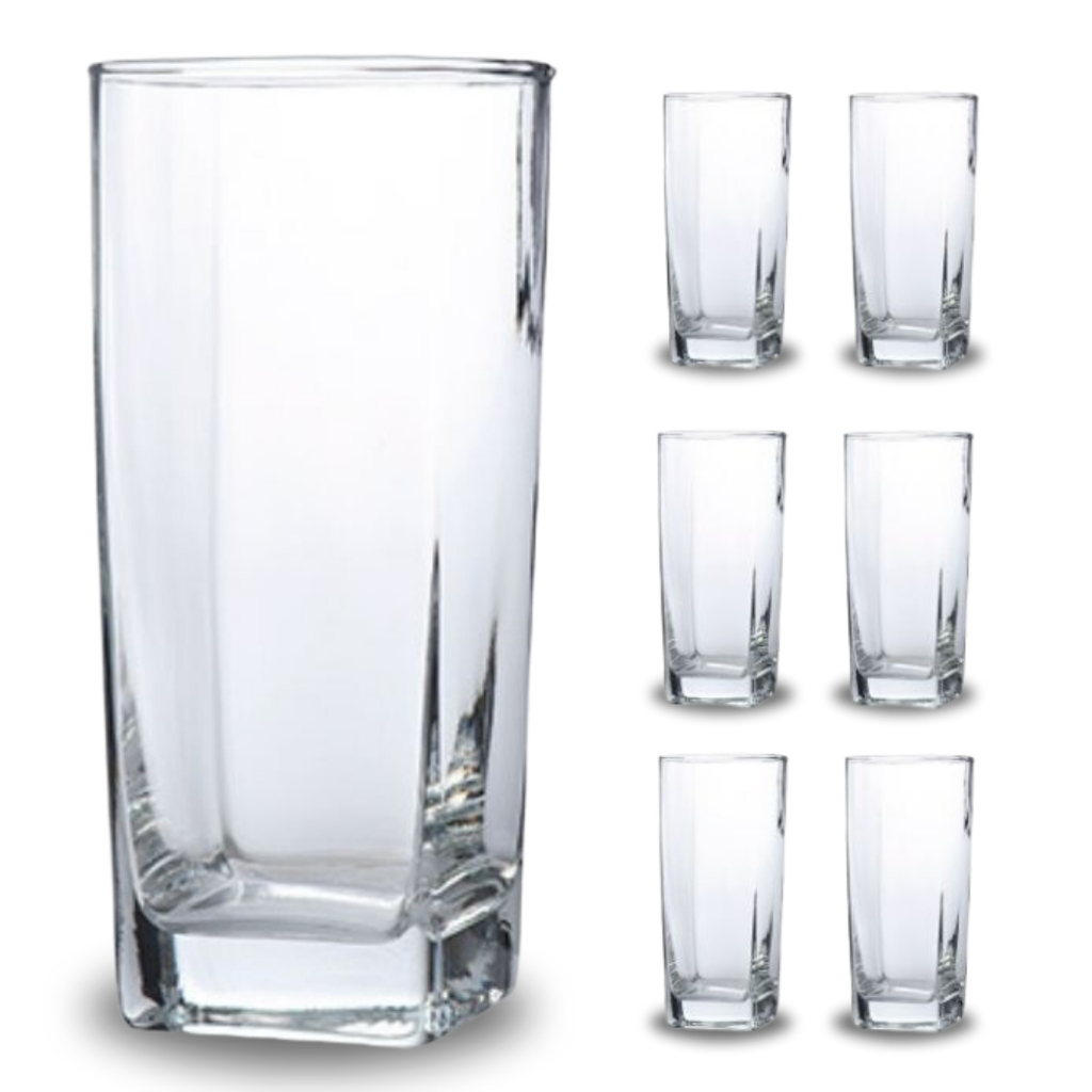 Jogo De 6 Copos 320ml Vidro Bali Quadrado Luxo Transparente