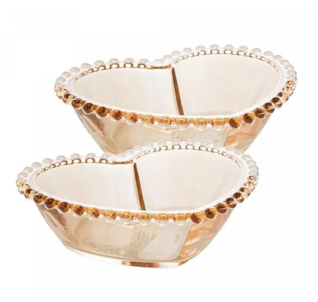 Conjunto 2 Bowls de Cristal Coração Pearl Âmbar 15cm x 13cm x 5cm - Wolff