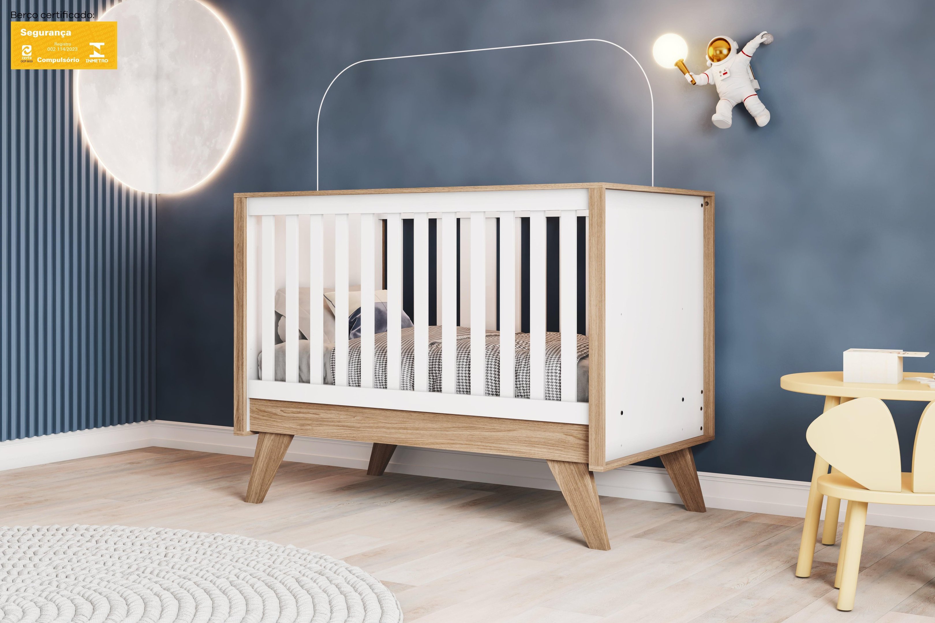 Berço Mini Cama 2 em 1 Aconchego Branco/Jequitibá - Henn