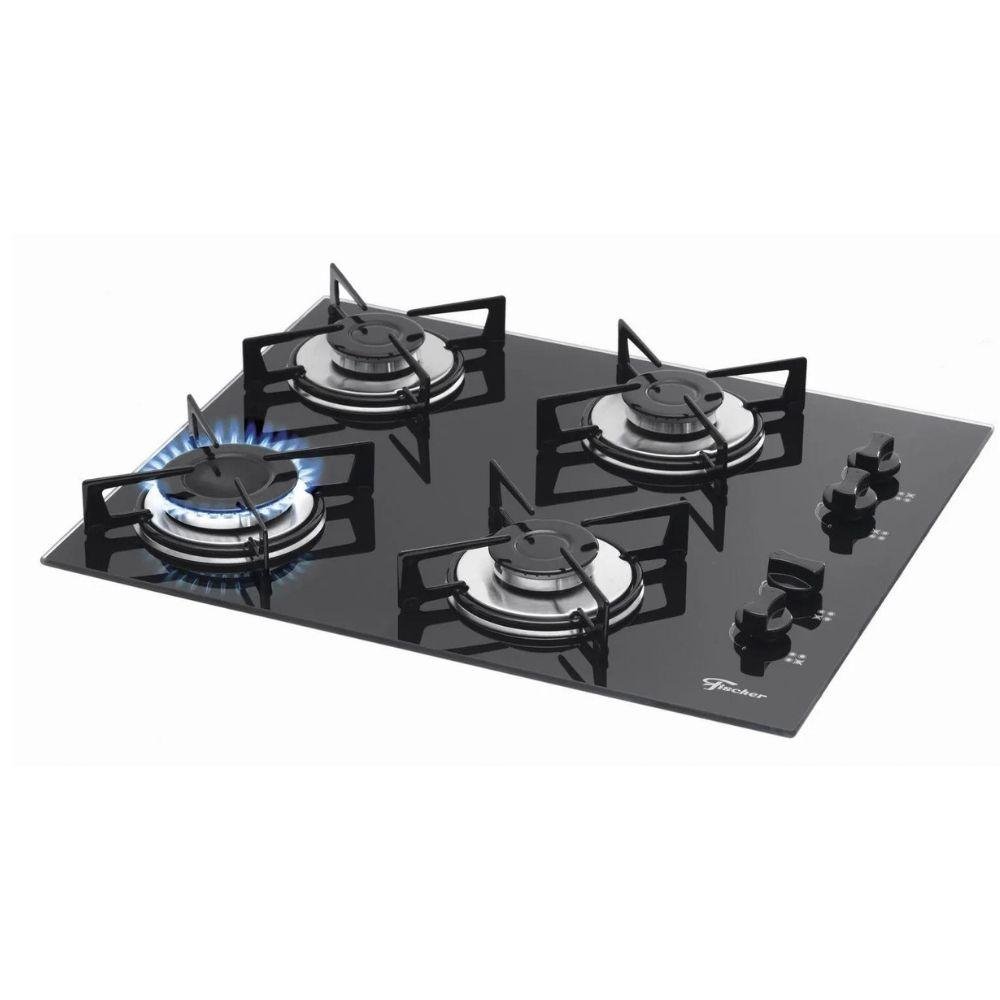 Fogão Cooktop Fischer 4 Bocas Gás Mesa Vidro Preto 1519-5713