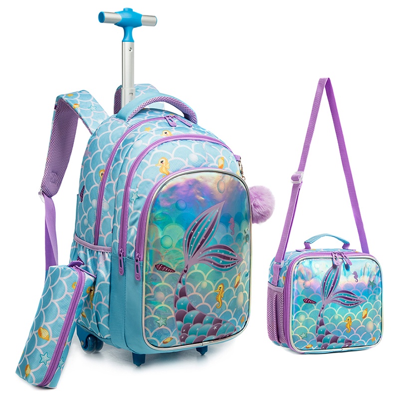 Bolsas Escolares Para Meninas Com Rodas Sereia Padrão Saco De Almoço Mochila Escolar